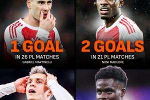 阿森纳4名边锋总身价2.35亿欧,本赛季英超合计打入14球。